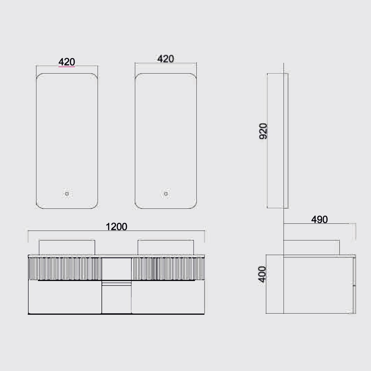 Ebatlar / Dimensions Ayna / Mirror : 420 x 920 120 CM Alt Dolap/ Main Cabinet: 1200 x 490 x 400