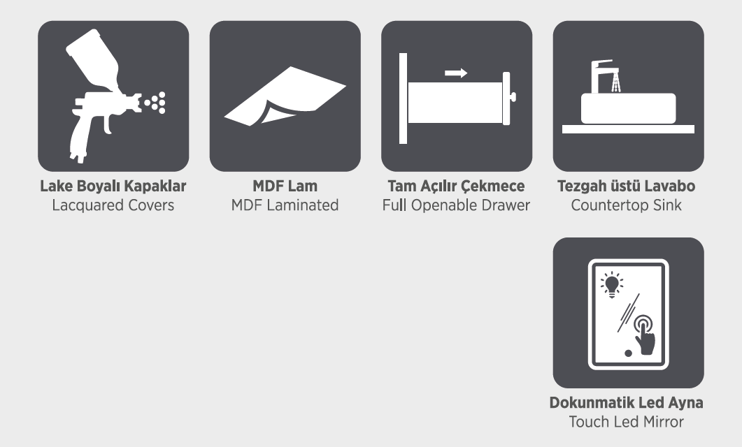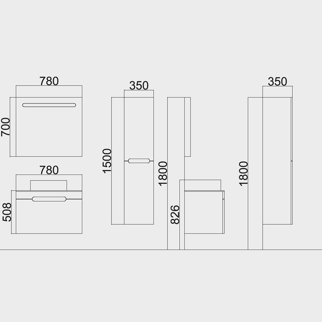Üst Dolap / Top Cabinet : 780 x 20 x 700 Alt Dolap/ Main Cabinet : 780 x 470 x 508 Boy Dolap / Side Cabinet : 350 X 1500 X 350